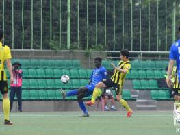 경기 초반부터 주도권을 가져간 쪽은 춘천이었다. 양주는 파이브백을 활용해 수비에 집중했다. 양주는 수차례 실점 위기를 넘겼고, 때로 역습을 활용해 골을 노렸다. 역습을 시도할 때면 “마틴! 마틴!” 외치는 소리가 고덕구장을 가득 메웠다. 지난해까지 고양시민축구단(K4)에서 뛰었던 남수단 출신 공격수 마틴을 부르는 소리다. 마틴은 동료들의 지원을 받으며 전방을 열심히 누볐고 몇 차례 슈팅을 시도했으나 골을 넣지는 못했다.