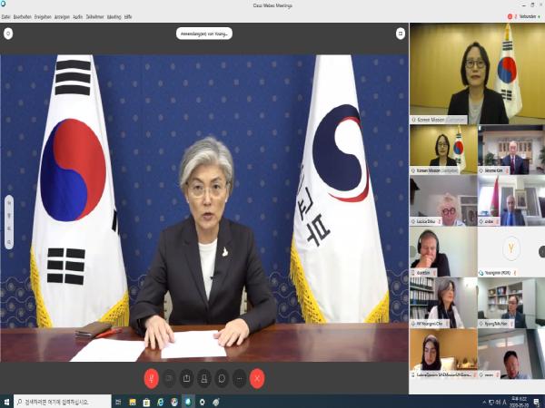 강경화 외교장관은 축사를 통해 코로나19와 같은 글로벌 감염병은 개별 국가 차원의 노력만으로는 성공적으로 대처할 수 없는 문제이므로, 우리 정부의 제안에 따라 새로 출범한 동 지지그룹이 제네바 차원에서 국제 사회의 보건 거버넌스 강화 논의에 성공적으로 기여할 수 있기를 바란다고 하였다.