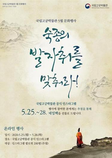 국립고궁박물관은 이번 달 25일부터 28일까지 박물관 인스타그램(https://www. instagram.com/gogungmuseum)을 통해 온라인 이벤트의 과제를 공개할 예정이며, 해당 과제를 수행한 200명을 추첨해 전통복식을 착용한 조선 국왕의 그림이 그려진 네임택(이름표)을 증정(1종)한다. 더 자세한 사항은 국립고궁박물관 누리집(gogung.go.kr)과 공식 인스타그램에서 확인하거나 전화(☎02-3701-7500)로 문의하면 된다.