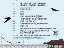 참가비는 1인당 1만원으로 회당 20명 선착순이며, 신청방법은 DMZ생태연구소(☎031-955-1550) 또는 다음 링크(https://forms.gle/baPgWwZH27hFDTaVA), QR코드를 통해 신청하면 된다.