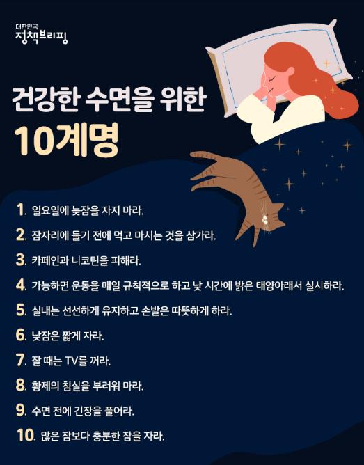 건강한 삶을 위해서 ‘건강 수면 10계명’을 잘 실천하고 노력해야 한다.