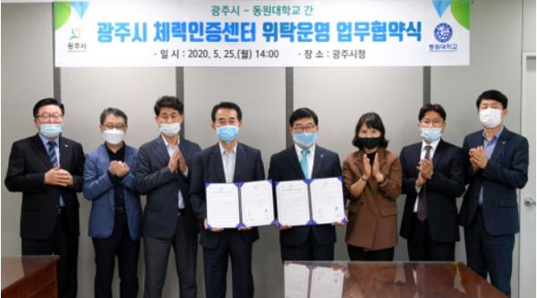[한국4차산업신문] 광주시 신동헌 시장과 동원대학교 이걸우 총장은 지난 25일 ‘광주시 체력인증센터 운영을 위한 위탁운영 협약’을 체결했다.
