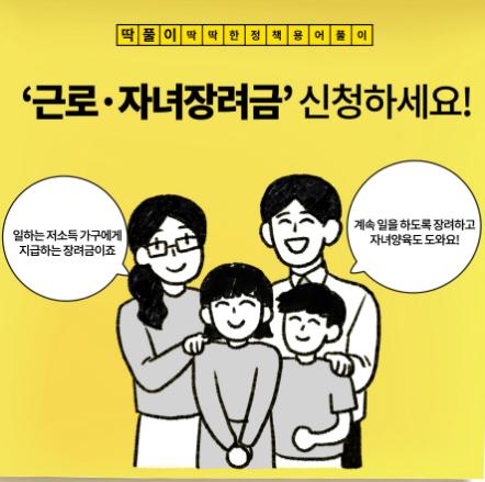 [한국4차산업신문] ‘근로·자녀장려금’은 일하는 저소득 가구에게 지급하는 장려금이에요. 계속 일을 하도록 장려하고 자녀양육도 도와요!
