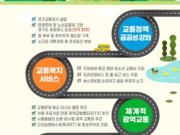 이에 경기도는 지난 2018년부터 ‘도민 중심의 공정한 교통복지 실현’을 민선7기 교통정책 비전으로 확립하고, ①공공성 강화, ②교통복지 서비스 제공, ③선제·체계적 광역교통대책 수립, ④친환경·안전한 대중교통 이용환경 조성 등 4개 분야 중점방향을 설정해 다양한 정책과 사업들을 추진 중이다.