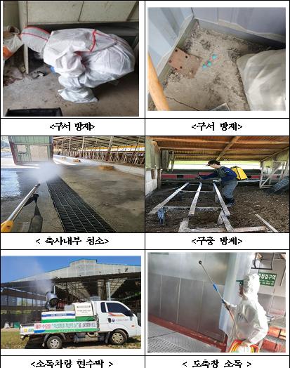 또한, 매주 수요일 축산환경개선의 날에 방역취약지역인 도축장, 전통시장, 소규모 농장 등 약 2만 2천여개소에 농축협 공동방제단(540대)과 지자체 소독차량(328대)을 활용하여 소독과 구충작업 등을 실시하고 있다.