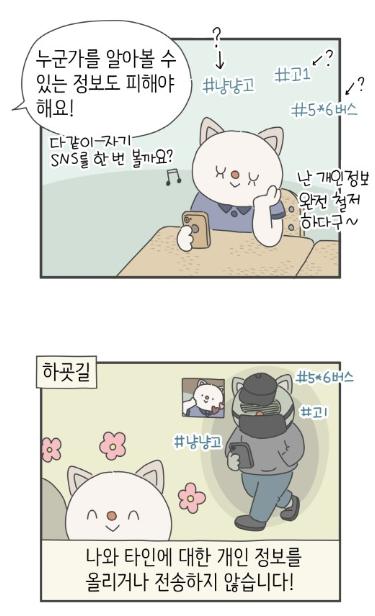 웹툰의 주요 내용은 △나와 타인의 개인정보를 올리거나 전송하지 않기 △타인의 동의 없이 사진·영상을 찍거나 보내거나 보지 않기 △잘 모르는 사람이 개인정보를 묻거나 만남을 요구하면 어른에게 알리기다. 특히 아동·청소년들이 온라인상에서 자신의 행위가 가해 행위가 될 수 있다거나 성범죄 피해를 입을 수 있는 상황임을 인지할 수 있도록 구성했다.