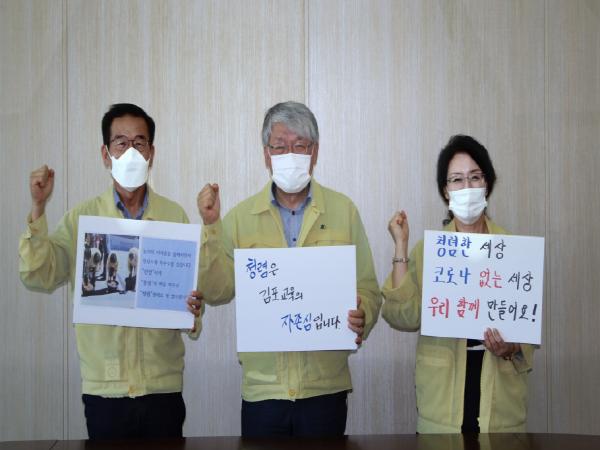 정경동 교육장은 “청렴은 김포교육의 자존심입니다”라는 슬로건을 통해 김포교육의 청렴 의지를 표명하며, “보다 더 청렴한 사회, 안전한 사회를 만들기 위해 저부터 솔선수범하는 모습을 보일 수 있도록 노력하겠다”고 밝혔다.