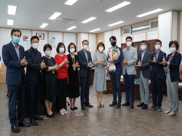6월 8일(월) 교육지원청은 그 간 하남시 교육 발전을 위해 노력한 경기도의회 추민규 의원에게 감사패를 수여하였다. 박 의원은 평소 하남시 교육 발전에 깊은 이해와 관심을 가지고 적극적인 지원을 위해 활발한 의정활동을 펼쳐 왔으며, 이날‘덕분에 청렴’캠페인에 동참하였다.