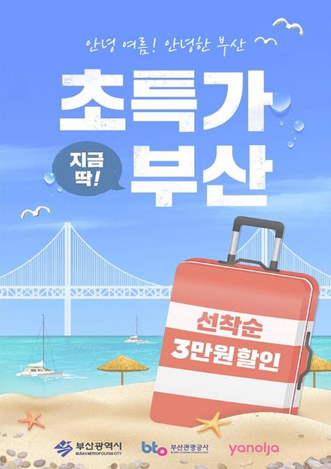 부산시(시장 권한대행 변성완)와 부산관광공사는 지역 숙박업계와 손잡고 지역경제 활력과 부산방문 관광객 유치를 위한 ‘초특가 숙박할인’ 공동 프로모션을 10억 원 규모로 진행한다고 밝혔다.