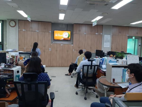 다만, 최근 수도권 중심의 코로나19 확진자 증가 추세에 따라 강화된 생활속 거리두기 실천을 위하여‘청렴으로 소통하는 날’에는 대면 홍보 대신 ▲각 사무실 TV로 청렴콘텐츠 영상 송출 ▲상호 존댓말 쓰기 ▲칭찬 주고받기 ▲갑질 자가진단 테스트 등 자체 방송시스템을 활용한 비접촉 자율 활동을 추진하여 코로나19 바이러스 확산 방지 및 배려와 존중문화 정착에 힘쓰고 있다.