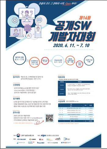 올해로 14회째를 맞는 이번 대회는 창의적인공개소프트웨어(이하 ‘공개SW’) 개발자 양성을 위한 것으로 22개팀을 선발, 총 상금 5,300백만 원을 지원하며 대상으로 과학기술정보통신부장관상이 수여된다.