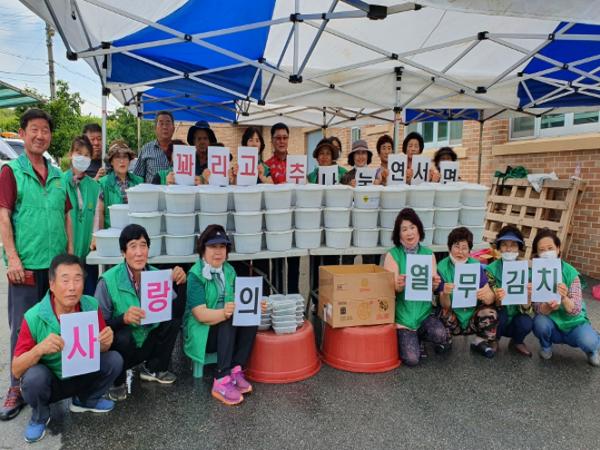 이날 행사에서 새마을지도자협의회, 부녀회 회원 30여 명은 정성껏 담근 열무김치와 밑반찬을 독거노인 등 소외계층 70가구에 전달했다.