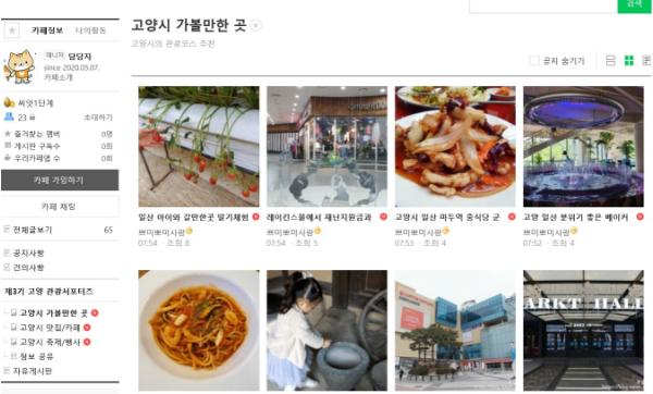 시는 관광서포터즈의 활동을 공유하고, 시의 관광자원을 홍보하기 위해 네이버 카페 ‘고양 관광스토리창고(http://cafe.naver.com/goyangsupporters)’를 개설했다고 12일 밝혔다.