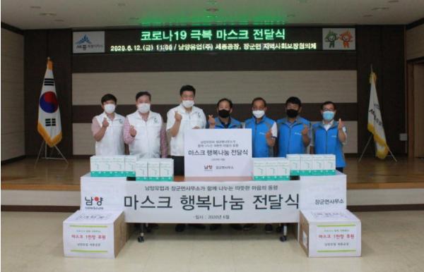 남양유업 세종공장은 코로나19로 인해 마스크 수급이 어렵다는 소식을 듣고 지역사회에 조금이나마 도움이 되고자 마스크 1만 장을 기탁한 것이다.