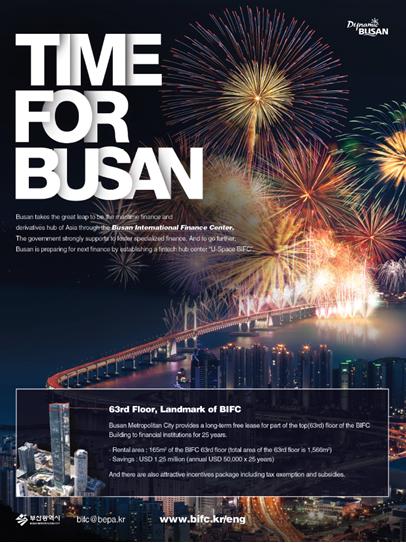 한편, 오는 7월 민관협력 금융전문기관인 (사)부산국제금융진흥원이 문을 열고 마케팅 및 금융 전문가들의 진용이 갖춰지면, 해외금융기관의 부산 유치에 더욱 박차가 가해질 것으로 예상된다.