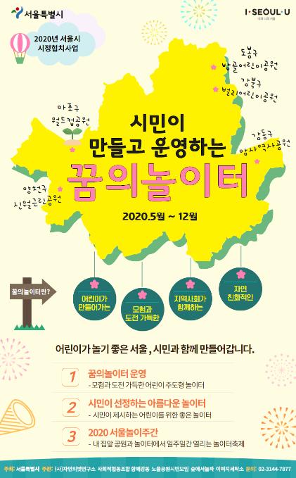 한편, 서울시는 ?시민이 만들고 운영하는 꿈의 놀이터? 사업을 통해 ‘시민이 선정하는 아름다운 놀이터’와 ‘2020 서울놀이주간’도 운영한다. 어린이 놀이권에 대한 인식개선과 시민참여를 통한 놀이터의 가치 제고에 나선다는 계획이다.