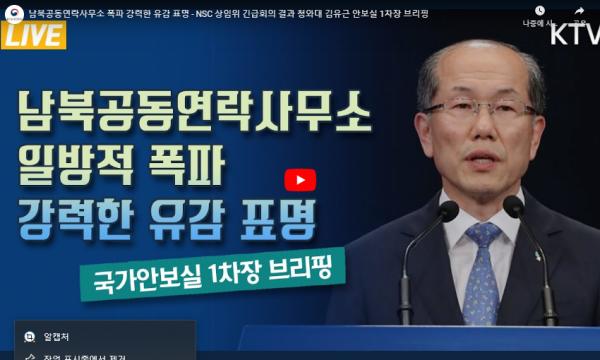 [한국4차산업신문] 정부는 오늘 북측이 2018년「판문점선언」에 의해 개설한 남북공동연락사무소 건물을 일방적으로 폭파한 것에 대해 강력한 유감을 표명하였다.