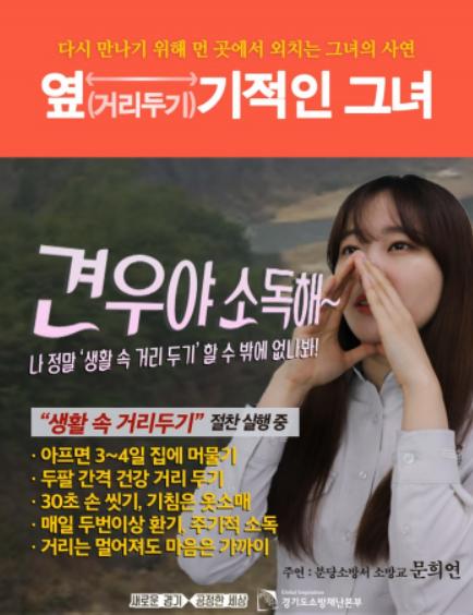 도 소방재난본부가 최근 제작한 카드뉴스 중 ‘옆(거리두기)기적인 그녀’는 영화 ‘엽기적인 그녀’의 결말을 본떠 ‘생활 속 거리 두기’의 실천 내용을 재미있게 전달했다. 또 산불로 타들어가는 산의 모습을 담뱃갑으로 표현하면서 ‘태우시겠습니까?’라는 문구를 넣어 산불에 대한 경각심을 심어주기도 했다.