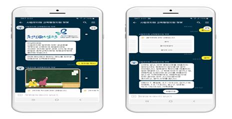 사립유치원 교육행정지원 챗봇은 카카오톡에서 검색 후 채팅을 통해 몇 번의 클릭으로 각종 업무 처리가 가능하도록 도와준다. 작년 10월부터 운영 중인 청렴챗봇을 개발한 노하우를 살려, 감사팀 직원들이 사립유치원 교육행정지원 챗봇을 자체 개발하여 예산을 절감(5백만원) 하였으며, 이용자가 각종 서식 등 관련 자료를 간편하게 실시간으로 확인할 수 있도록 하여 활용도를 높였다.