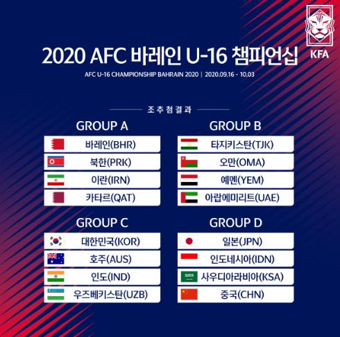 한편, 2020 AFC U-16 챔피언십 대회는 오는 9월 16일부터 10월 3일까지 바레인에서 열린다. 2020 AFC U-19 챔피언십은 10월 14일부터 31일까지 우즈베키스탄에서 열린다.