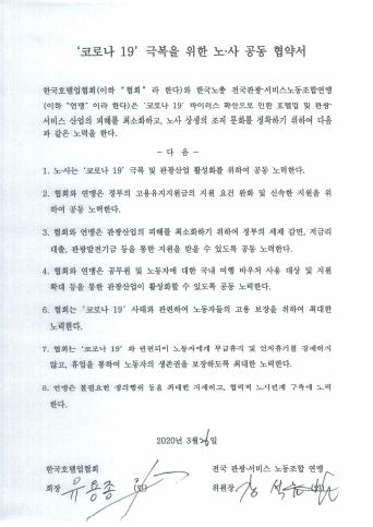 노광표 위원장은 “코로나 이전에도 많은 국가들이 무공해 산업이자 고부가가치 산업인 관광·서비스산업을 ‘미래 먹거리’ 전략산업으로 육성해 왔다”며 “대면서비스에 능한 숙련노동자들이 업계를 떠나지 않도록 하는 것이 우리나라 관광·서비스산업 유지·발전의 전제조건이라는 인식 아래 노사정이 지혜를 모아가겠다”고 말했다.