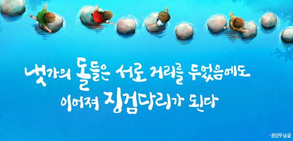 이번 문안 공모전에서 대상을 수상한 권선우씨는 현재의 우리 상황을 담은 글귀라며 “여전히 우리는 거리를 두고 있고, 멀어진 듯한 모습에 안타까운 마음이 들지만 결국 이어져있음을 잊지 말아야 한다”고 전했다. “사람과 사람 사이 ‘거리’를 두고 있어도, 냇가에 띄엄띄엄 놓인 돌들이 징검다리를 이루듯이 서로의 생각과 마음은 이어져 있다는 희망과 위로를 문안에 담았다”라며 창작 의도를 밝혔다. 권선우씨는 “이 상황을 현명하게 인내하면서 나아가면, 우리는 거리를 좁혀 다가오는 모든 계절들처럼 가까워질 것이다”라고 덧붙였다.