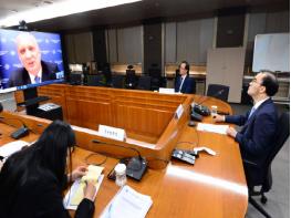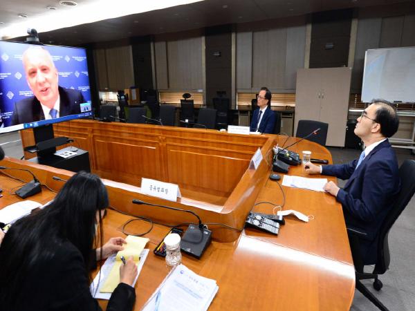[한국4차산업신문] 이성호 외교부 경제외교조정관은 6.26일 오후 안드레이 답큐나스(Andrei Dapkiunas) 벨라루스 외교차관과 화상회의를 가졌습니다. 양측은 △코로나19 대응, △제5차 한-벨 경제과학기술공동위원회(2018.9월, 서울) 후속조치, △신북방협력 강화 방안 등에 관해 논의했다.