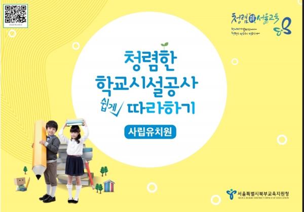 서울시교육청(교육감 조희연) 소속 북부교육지원청(교육장 조호규)은 「청렴한 학교시설공사 쉽게 따라하기」동영상 및 교재를 제작하여 6월 30일(화)부터 관내 74개 사립유치원에 보급한다.