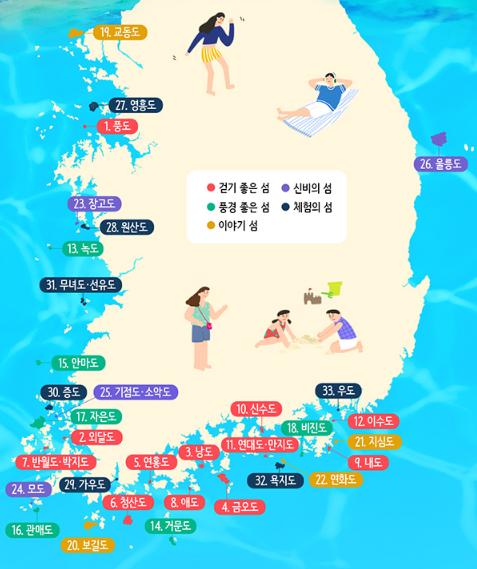 [한국4차산업신문] 행정안전부가 걷기 좋은 섬, 풍경 좋은 섬, 이야기 섬, 신비의 섬, 체험의 섬 등 5가지 주제로 분류한 ‘2020년 휴가철 찾아가고 싶은 33섬’을 선정·발표했다.