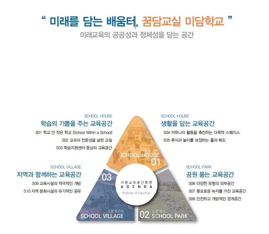 서울시교육청은 『미담학교』를 스마트·그린·공유 뉴딜 정책이 담긴 에듀테크 기반 미래학교, 공원을 품은 학교, 지역사회와 함께하는 안심학교의 모습으로 제시했다.