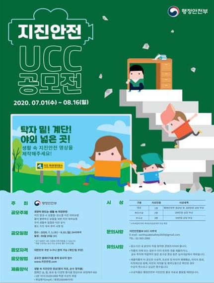 행정안전부(장관 진영)는 7월 1일부터 8월 16일까지 지진에 대한 국민 안전의식을 높이기 위해 ?지진안전 UCC 공모전?을 개최한다.