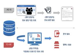 조달청은 그동안 시범 적용 및 해결방안 검증 결과를 바탕으로 '직접생산 확인 증명 유효기간 안내'*, '입찰현황 자료 작성' 등의 업무에 대해서도 RPA를 적용할 예정이다.