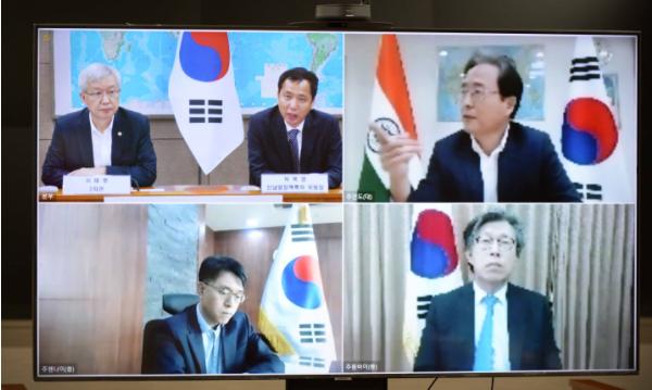 [한국4차산업신문] 이태호 외교부 2차관과 박복영 신남방정책 특별위원회 위원장은 7.2일 오후 인도 지역 공관장(주인도대사, 주첸나이총영사, 주뭄바이총영사)과 화상회의를 갖고, 신남방정책 강화 방안 및 포스트 코로나 시대 한-인도 협력 방안에 대해 논의하였다.