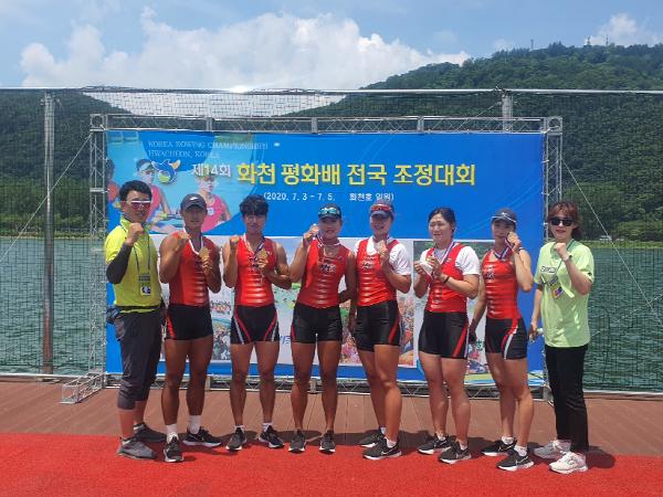 [한국4차산업신문] 지난 7월 3일부터 7월 5일까지 3일간, 강원도 화천군 화천호 조정경기장에서 제14회 화천 평화배 전국조정대회가 개최되었다. 올해 초 코로나19 여파로 모든 대회가 취소·연기된 가운데 열린 첫 조정 대회에 출전한 진주시청 조정부는 금메달 3개, 동메달 3개를 획득하는 쾌거를 달성했다.