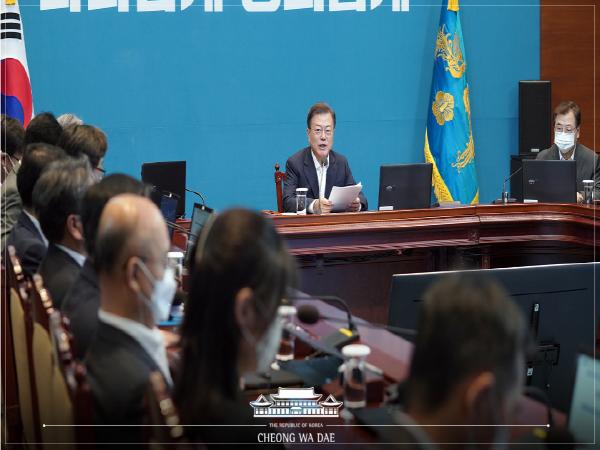 또한 대통령은 "오늘부터 7월 임시국회가 시작된다"며 "국회가 정상적으로 가동되길 바라는 국민의 요구가 외면되지 말기를 바란다"고 당부했다. '코로나 위기 상황'과 '포스트 코로나' 시대의 격변 속에서 협치는 더욱 절실하다고 강조하며 "국가의 명운을 걸고 범국가적 역량을 모아야 한다"고 덧붙였다.