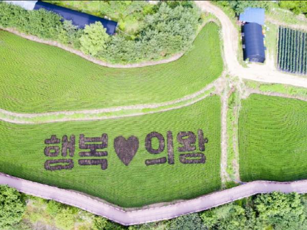 의왕시 시정 슬로건인‘시민이 행복한 새로운 의왕’을 모토로 하여 ‘행복♥의왕’이라는 글자를 자색벼와 붉은 벼로 디자인 해 의왕의 도심속 아름다운 자연의 모습을 시민들에게 보여주고 있다.