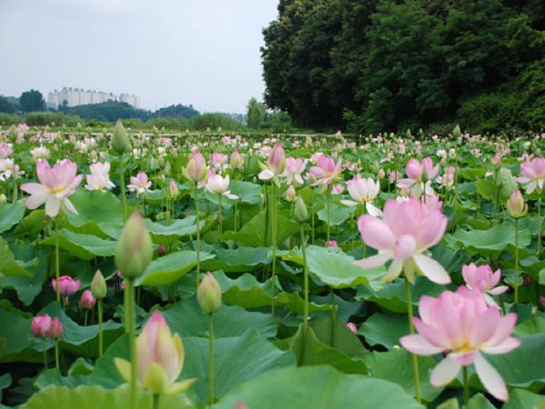 연꽃이 만발한 이곳은 의왕레일바이크 정차장 뒤쪽 도보 2분 거리로 2008년부터 의왕시에서 조성해 매년 여름이 되면 많은 관광객과 사진작가들이 찾아오는 의왕시의 명소로 자리잡았다.