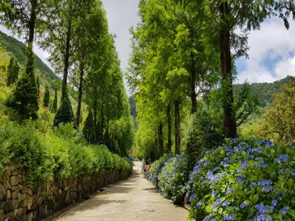 고성군 동해면에 위치한 만화방초는 수국과 꽃무릇 등 30종의 식물이 다양한 볼거리를 연출하고 있으며, 올해 3회째 수국전시회를 열고 있다.