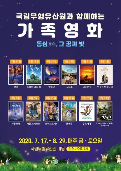 가족영화 <동심童心, 그 꿈과 빛>은 가족의 힘으로 코로나19를 함께 이겨보고자 하는 의지를 담아 마련하였다. 어린이를 중심으로 가족들이 가족애를 나눌 수 있는 여름밤의 나들이 문화를 만들고자 기획하였다. 한여름 밤더위를 피해 국립무형유산원 마당의 대형전광판을 이용하여 야외에서 돗자리를 깔고 가족 단위로 영화 관람을 할 예정이다.