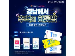 지난 6월 공모를 통해 국내 유명 온라인 여가 플랫폼 ‘㈜야놀자’를 프로모션 운영사로 선정함에 따라, 경남도는 야놀자 앱을 통한 ‘경남도 전용관 페이지’에서 숙박 예약과 결제 시 이용 가능한 할인쿠폰을 제공한다.