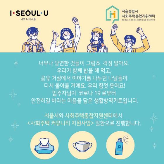 이번 생활방역키트「희망백신」은 서울시 사회주택종합지원센터의 사회주택 입주자 커뮤니티 지원사업의 일환으로 진행되며, 사회주택 입주자 전세대 550세대에 전달된다