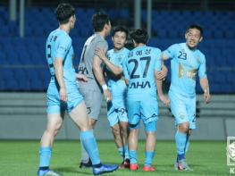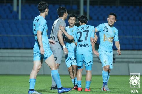 후반 시작과 동시에 김포는 교체카드를 꺼내들었다. 고민성을 빼고 박수창을 투입했다. 박수창은 후반 1분만에 슈팅을 시도하는 등 적극적으로 움직였다. 고정운 감독은 후반 9분 두 번째 교체카드로 이혁주를 빼고 김동찬을 투입했다. 고 감독의 용병술은 성공적이었다. 후반 10분 김포의 공격 상황에서 사이드에서 올라온 크로스를 이기제가 머리로 떨어뜨려줬고, 이를 김동찬이 마무리하며 마침내 선제골을 터뜨렸다. 베테랑과 어린 선수의 환상적인 조화였다.