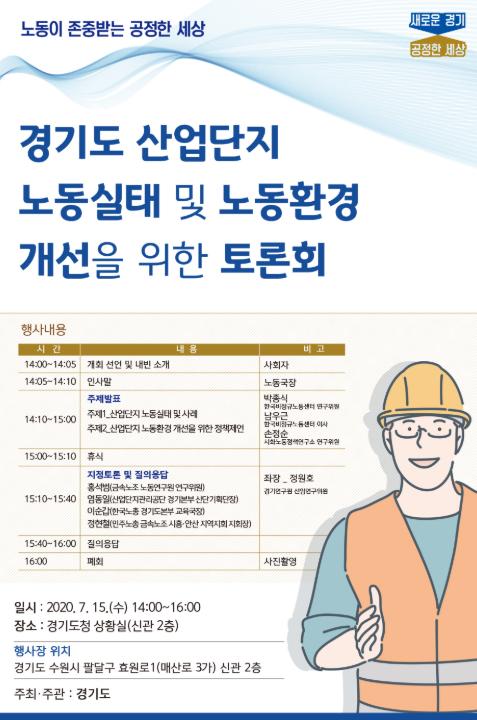 도는 조사결과를 토대로 오는 15일 ‘경기도 산업단지 300인 이하 사업장 노동실태 및 산업단지 노동환경 개선을 위한 토론회’를 개최한다.