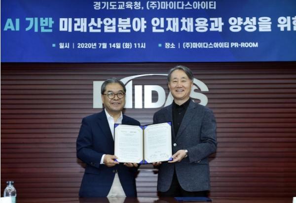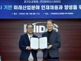 경기도교육청(교육감 이재정)이 14일 주식회사 마이다스아이티(대표이사 이형우)와 인공지능 기반 채용 정보 시스템 마련을 위해 협약을 맺었다.