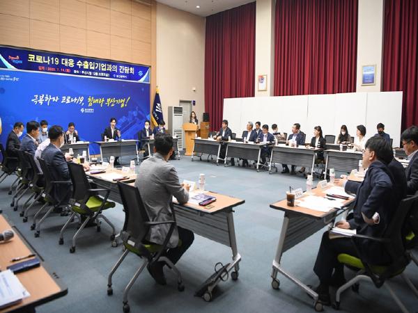 부산시(시장 권한대행 변성완)는 오늘(14일) 오후 2시 시청 12층 소회의실에서 코로나바이러스감염증-19(코로나19) 사태의 장기화에 따른 지역 수출중소기업들의 애로사항을 듣고 대응방안을 모색하기 위하여 수출 관계기관과 함께 수출기업 긴급 간담회를 개최하였다고 밝혔다.