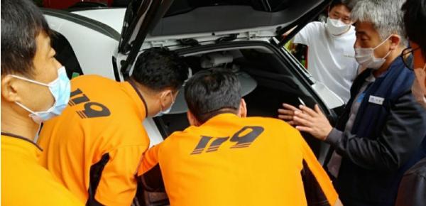 천창섭 대응예방과장은 “전기차는 전기 자체를 동력원으로 사용하는 차량으로 사고 발생 시 감전의 우려가 있어 자동변속기를 주차(P)로 놓고 시동장치의 전원 스위치를 오프(off)로 하고 신속하게 대피해야 한다”라고 밝혔다.