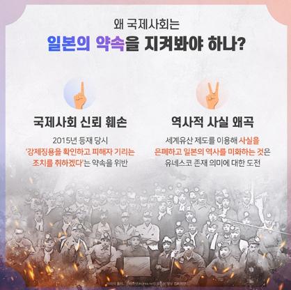 [한국4차산업신문] 2015년 7월 일본의 근대산업시설이 유네스코 지정 세계유산으로 등재될 당시 사토 구니 당시 주유네스코 일본 대사는 “한국인과 타국인들이 본인의 의사에 반하여 끌려와 가혹한 환경 속에서 강제로 노역했으며(forced to work), 일본은 이를 이해할 수 있도록 하는 조치를 취할 준비가 돼있다.”고 말했다.