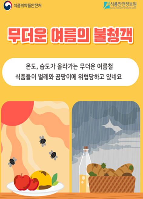 식품의약품안전처(처장 이의경)는 온·습도가 높은 무더운 여름철에는 벌레, 곰팡이 등의 이물이 식품에 혼입될 가능성이 높아지는 만큼 취급·보관·관리에 있어 각별한 주의가 필요하다고 밝혔다.