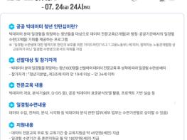 최종 선발된 청년들은 8월부터 2개월 동안 공공빅데이터 기획·분석, 표준분석모델 실습, 실무형 프로젝트 등 데이터 분석을 위한 실무 위주의 전문교육을 통해 현장 친화형인재로 양성된다.