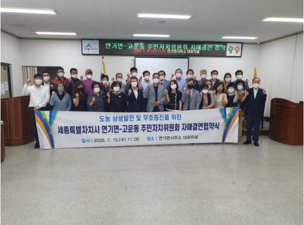 고운동 주민자치위원회는 15일 연기면사무소에서 김현경 고운동 주민자치위원장, 이진명 연기면 주민자치위원장 등 양 지역 주민자치위원 40여 명이 참석한 가운데 자매결연 협약을 체결했다고 밝혔다.
